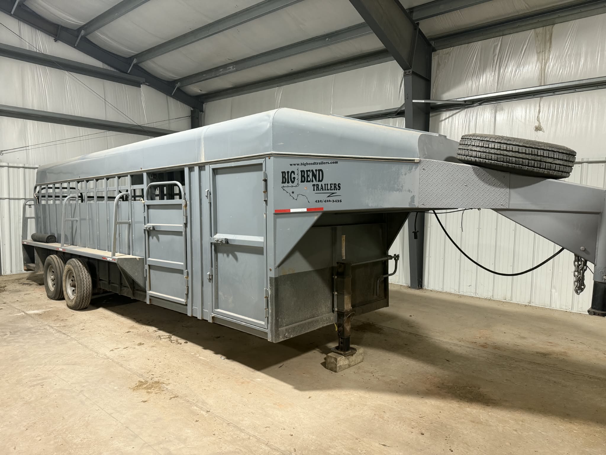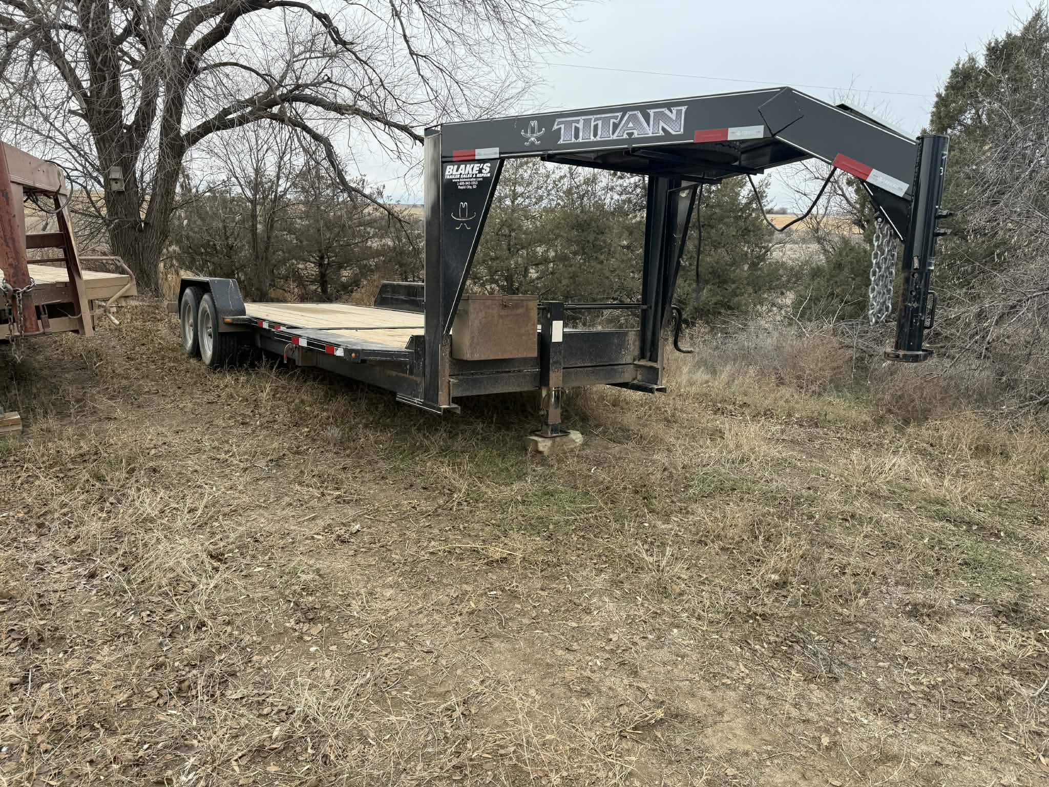 1999 Fontaine Specialized 53’ low boy semi-trailer; Dodge RAM 2500 w/western snow plow; 2021 Titan Goose neck 7’x24’ tilt deck tandem car type trailer; 2015 Big Bend 24’ stock trailer w/tack room;  20’x6’ tandem axle Shop made bumper pull trailer; 2000 Texas Roll Back trailer 7’x20’ tandem axle bumper pull, metal deck;  5’x12’ single axle trailer; 6.5’x20’ tandem axle  bumper pull trailer w/gas powered irrigation pump & fuel tank.