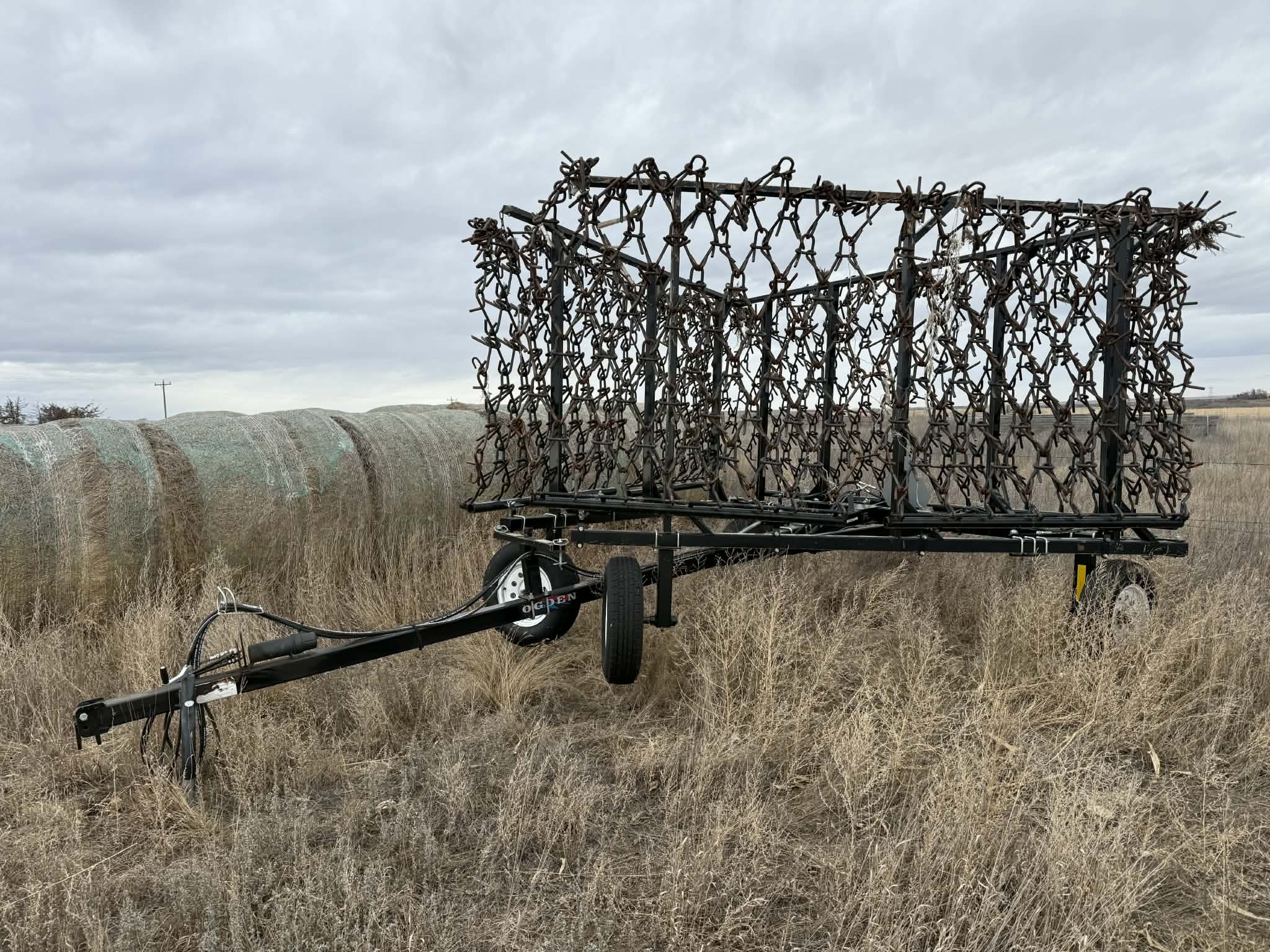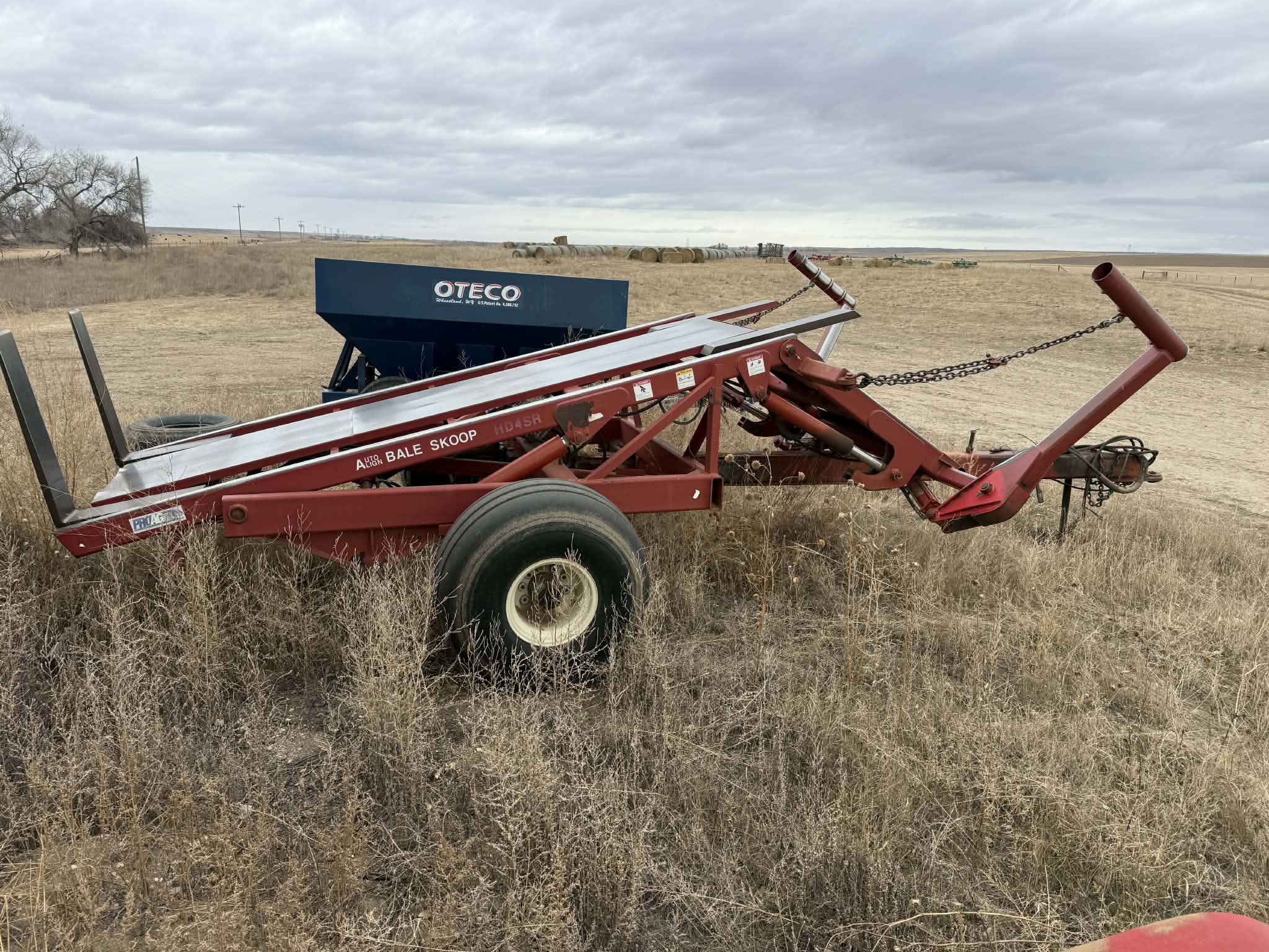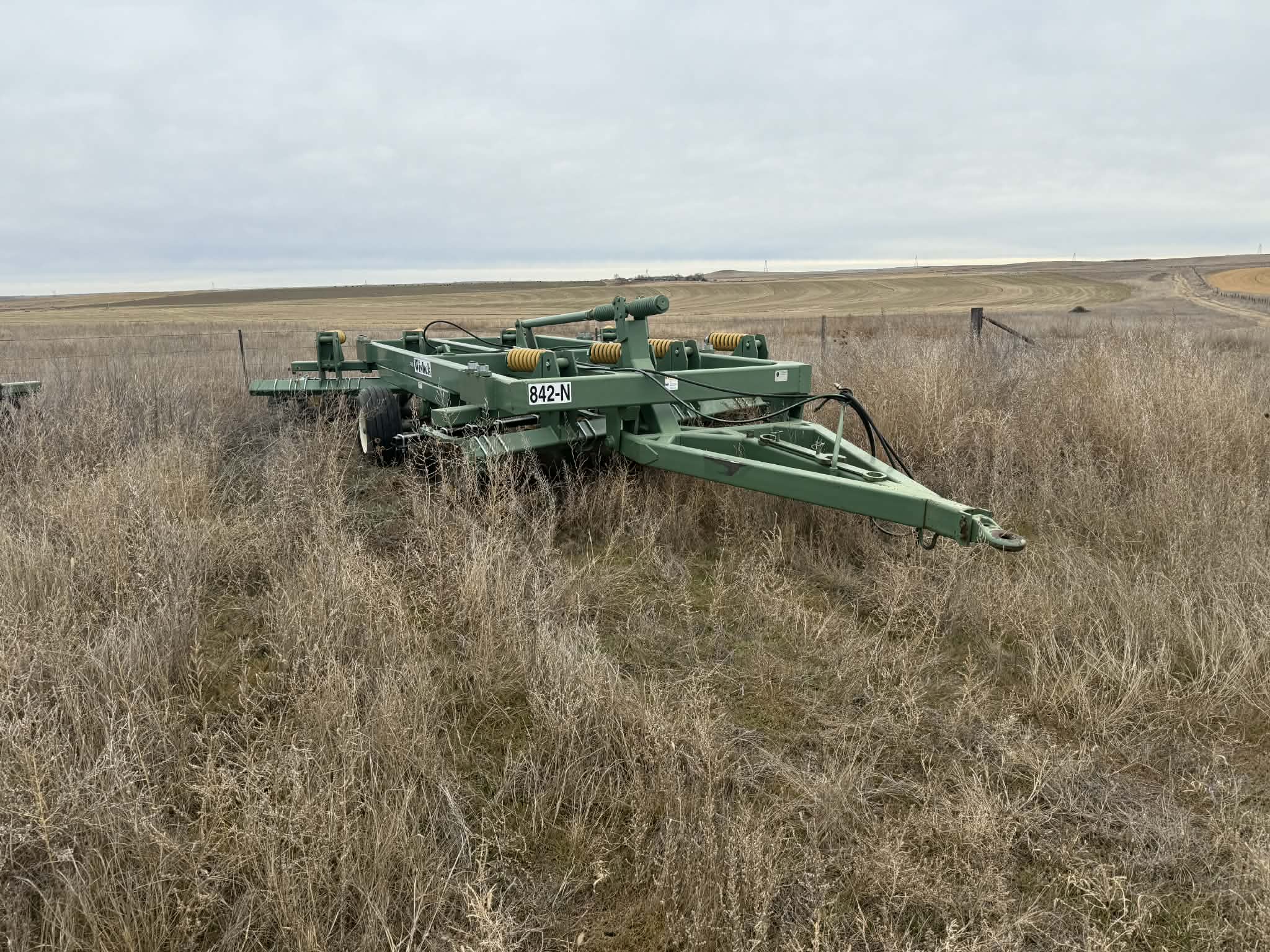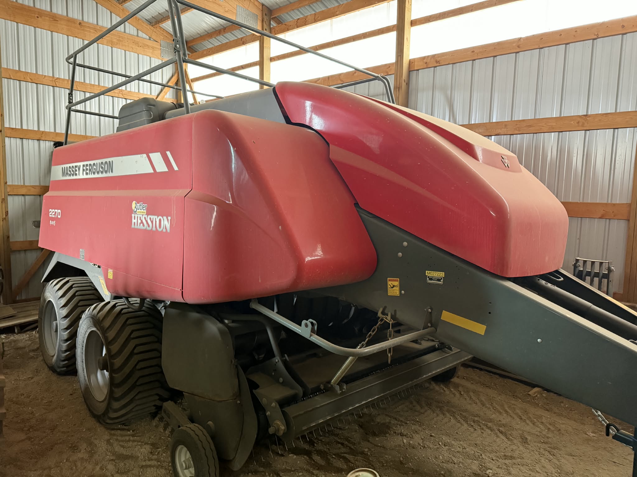 John Deere R450 Swather w/16’ 995 5m head A-1; Massey Ferguson 2270 class 5 large square baler A-1; 25’ Claas Liner 2800 dual rotor PTO wheel rake A-1; Wishek 22’ HD tandem disk w/harrows; Wishck 12’ off set HD disk; Horsch Joker RT-300 30’ disc/harrow; Ogden 30’ harrow; Walinga 6614 Agri -vac; Virnig 78” skid steer Quick Tach rotary mower; Cat SG16b quick tach stump grinder; The Verminator by Inventive 3 pt varmit poisoner; Farmi Forest Valby HD 3pt PTO wood chipper; Oteco track filler wagon; Auto Align bale scoop HD4SR; Bush Hog 12715 Legend 15’ bat wing rotary mower; Haugen 4’x8’ man bucket/cage; Miller Grabteck quik tach grapple bucket;  Bale Claw 5000 VE square bale grabber; Haukaas double round bale grapple, rotator; Haukaas single bale grabber quick tach; Gravity wagon box on 5010 running gear; Elias livestock scale converted to round bale scale; Quick tach pallet forks & buckets; Kwik Way 8” quick tach snow blade; 3 pt, pto broad cast spreader.