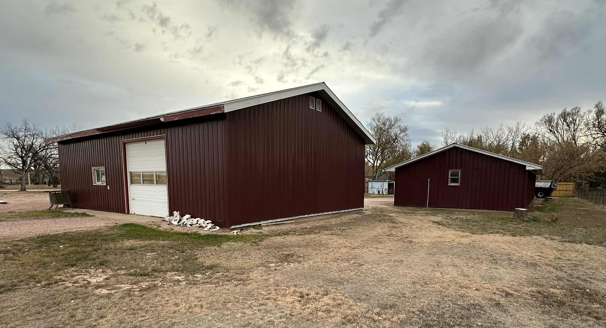 REAL ESTATE consists of a large corner lot on the north edge of Buffalo Gap at the corner of N 3rd. Street and Dudley Street, featuring a wood frame shop with electric heat & air conditioning, air compressor, and more. Also features a five-stall storage building with 5 individual roll up doors and a finished office. Also includes an existing septic system and City water hookup to add a residence if desired. Also includes a well for garden/lawn water, garden area, shade trees garden shed and more.